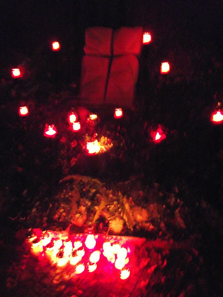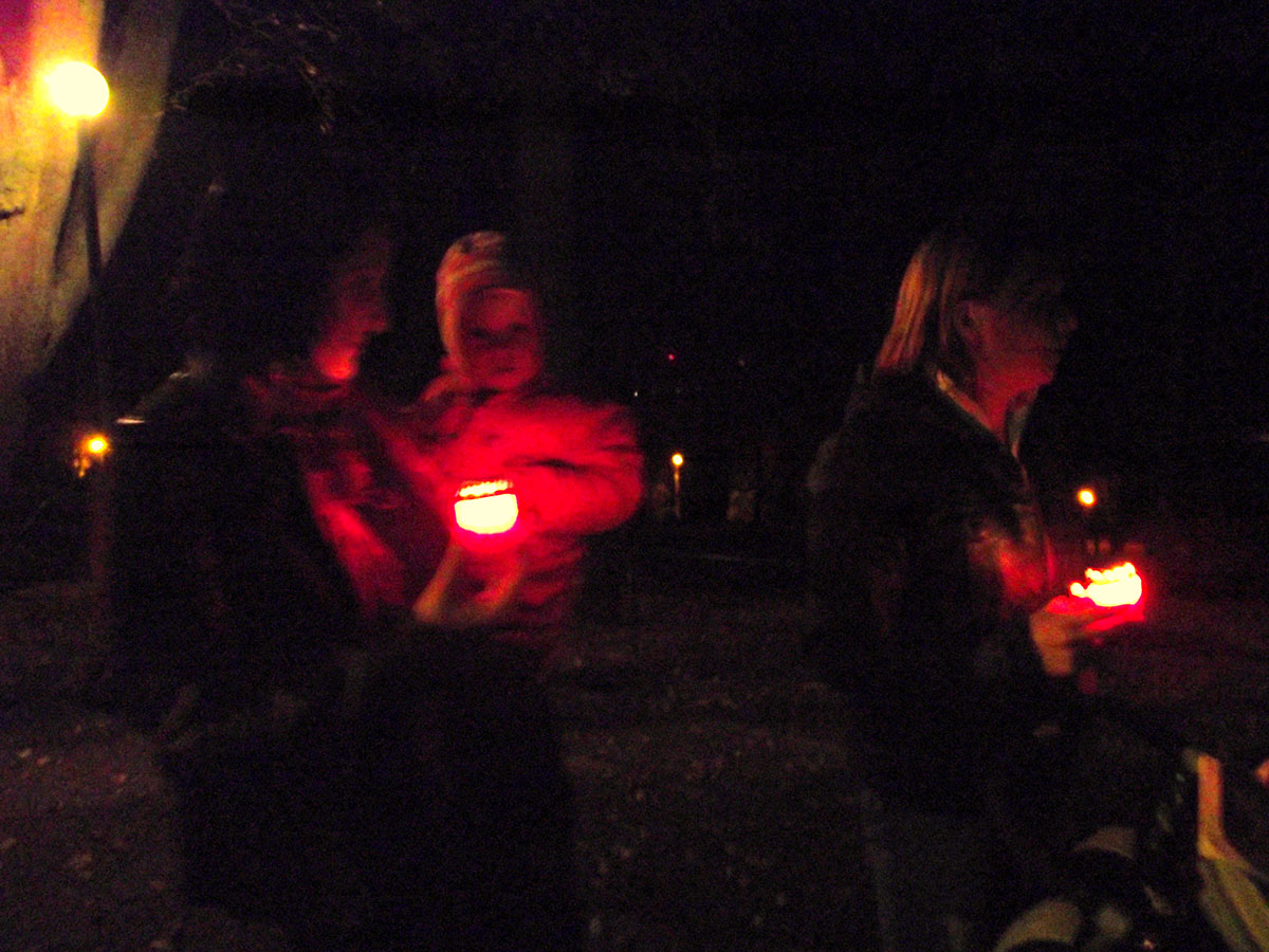 Po Mszy Świętej z zapalonymi zniczami poszliśmy we wspólnej procesji na Symboliczny Grób Dziecka Utraconego, gdzie wysłuchaliśmy pokrzepiających słów ks. Jerzego Dzierżanowskiego, a również pięknej pieśni „Wierzę” wykonanej przez panią Malwinę. Był to wzruszający moment, w którym mogliśmy również osobiście wszystkim utraconym maluszkom szepnąć „dobranoc”.